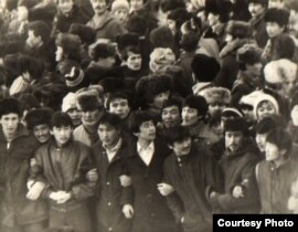 Брежнев атындағы алаңға жиналған қазақ жастары, желтоқсан, 1986 жыл.
